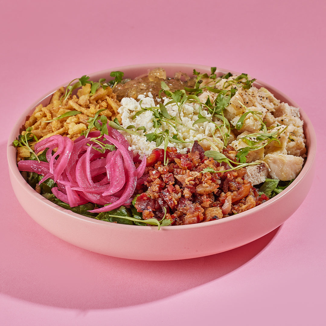 LETTUCE MIX TOPPED WITH PICKLED ONIONS, CRISPY ONIONS, SWEET ONION JAM, BACON, FETA CHEESE AND DRESSING OF YOUR CHOICE