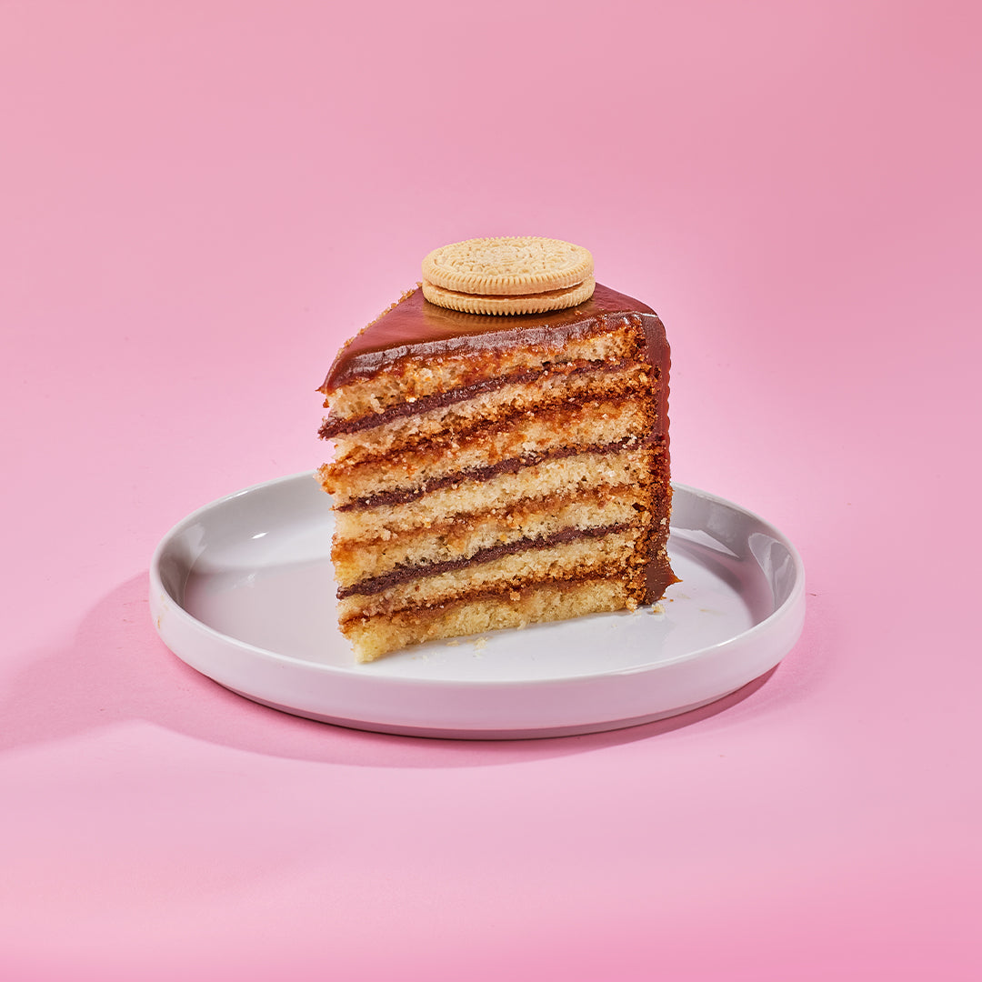 THIN LAYERED VANILLA CAKE FILLED WITH NUTELLA AND DULCE DE LECHE