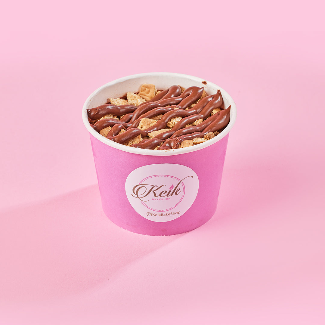THIS LATIN CLASSIC IS MADE OUT OF A NUTELLA CREAM LAYERED WITH MOISTENED MARIA COOKIES AND WE ADD SOME CHOCOLATE CAKE CRUMBLE IN THE MIDDLE