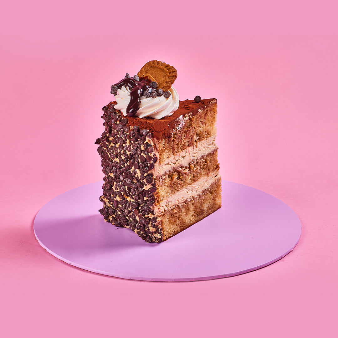 VANILLA CAKE MOISTENED WITH COFFEE AND FILLED WITH MASCARPONE CREAM AND COOKIE BUTTER