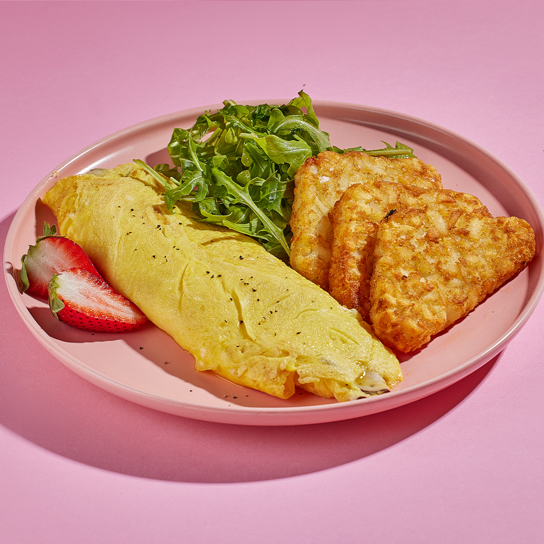 OMELET FILLED WITH TOMATOES, SPINACH, MUSHROOMS AND ONION SERVED WITH YOUR CHOICE OF: HASH BROWNS, TOASTED BREAD OR BREAKFAST POTATOES
